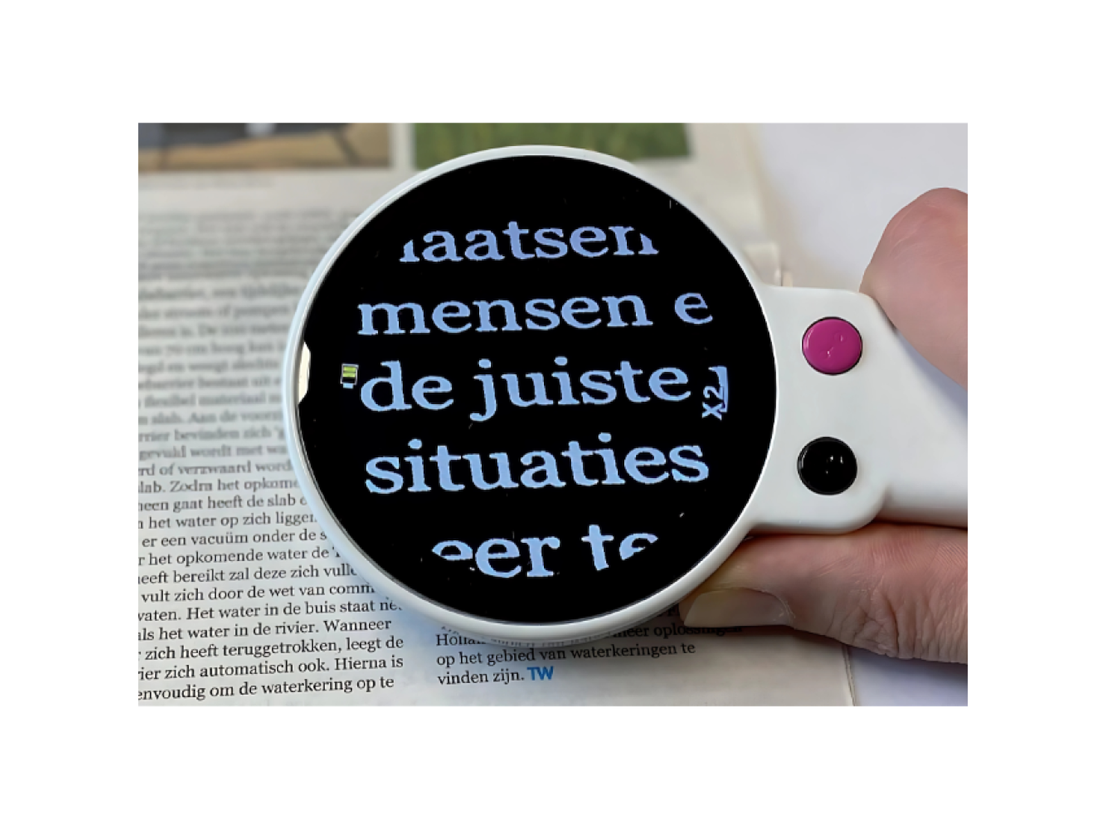 Med ét tryk fryser du billedet og kan holde det tæt på øjnene – perfekt hvis hånden ryster, eller du vil bruge begge hænder. Det giver ro og gør det lettere at læse selv små eller tættrykte tekster.