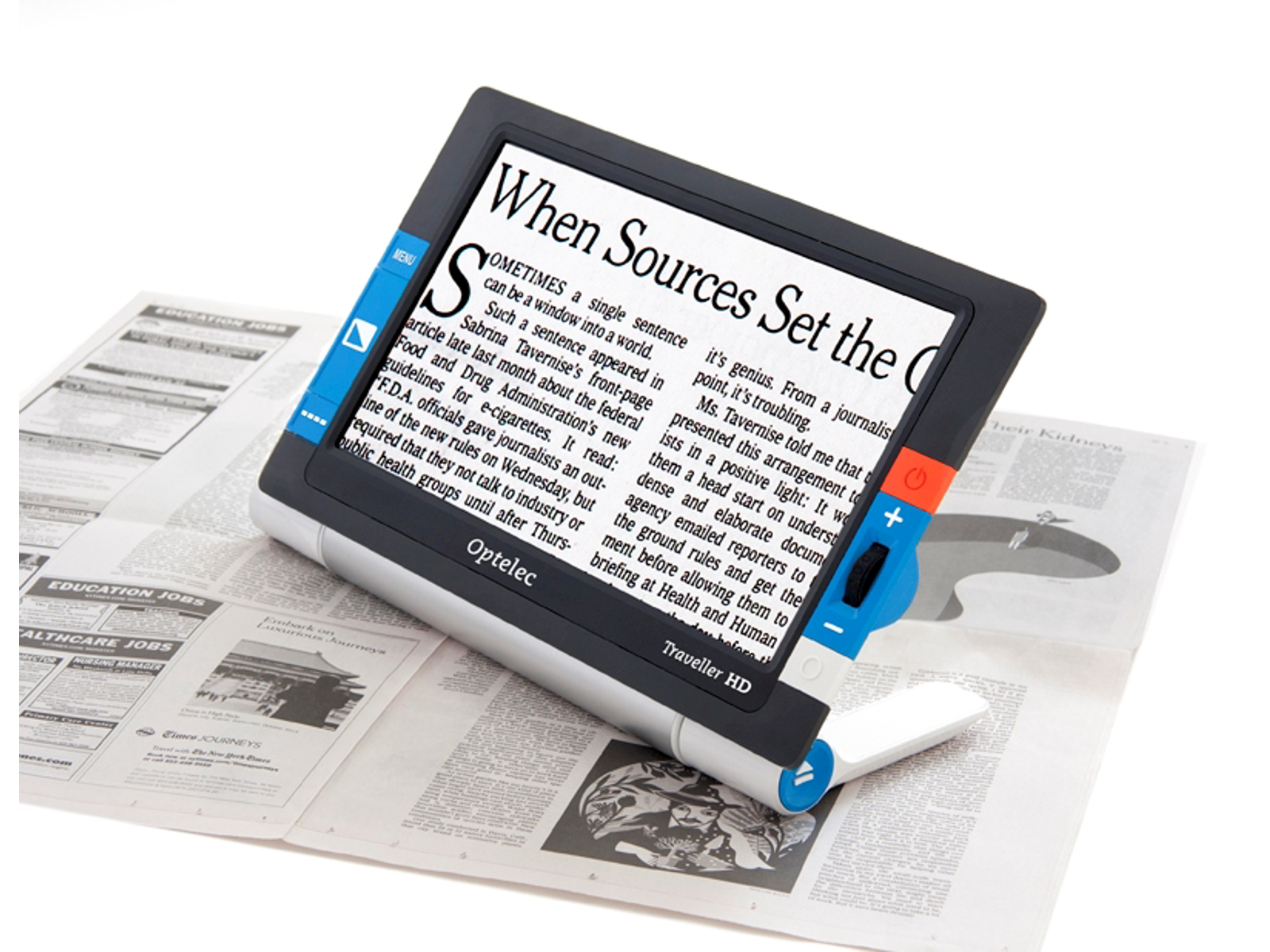 Traveller HD er en bærbar elektronisk lup med 13,3” Full HD-skærm og integreret glideskinne, der gør det nemt for svagsynede at læse længere tekster– fx aviser, bøger, blade og breve – med høj komfort og rolig billedvisning. Du fører skærmen hen over teksten, uden at flytte papiret, og slipper for flimrende skærme, dårlig kontrast og bøvlet betjening.